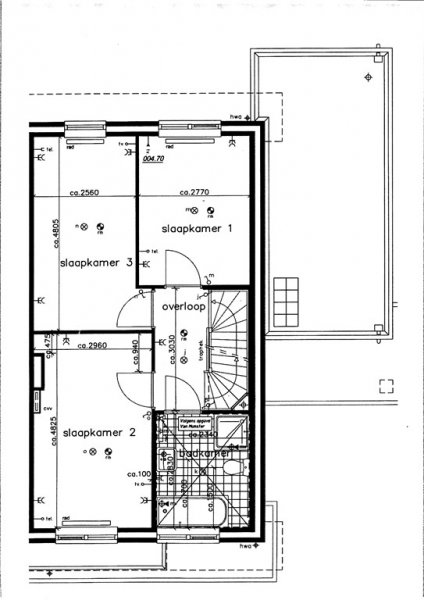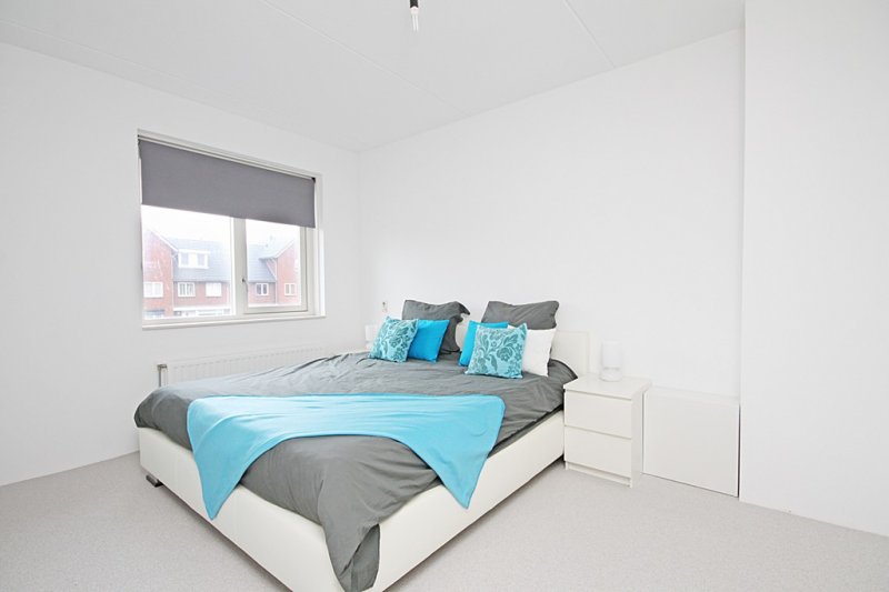 De eerste etage is eveneens geheel voorzien van een epoxyvloer. Via de ruime overloop (3,03m. x 2,34m.) heeft u toegang tot de masterbedroom (4,83m. x 2,96m.), gelegen aan de voorzijde van de woning. Aan de achterzijde zijn twee slaapkamers gelegen van 2,56m. x 4,81m. en 2,77m. x 3,91.