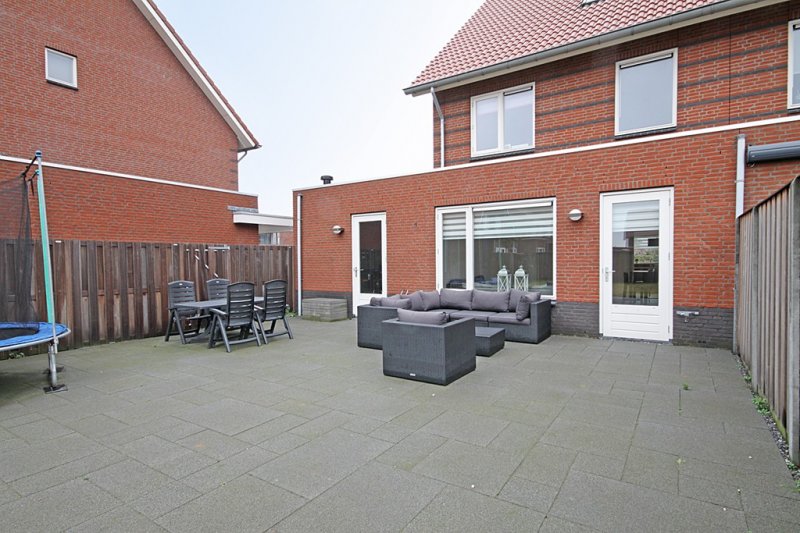 De prachtige zeer royale woonkamer (7,23m. x 5,40m.) is voorzien van een epoxyvloer met vloerverwarming en een bergkast. Vanuit de woonkamer kunt u naar de met schuttingen volledig afgesloten achtertuin van 25 x 12 meter. U heeft hier middels een loopdeur toegang tot de garage. De garage (6,30m. x 2,83m.) is aan de voorzijde te bereiken middels een elektrisch bedienbare roldeur. De tuin is te bereiken via een zij- en achterpad.